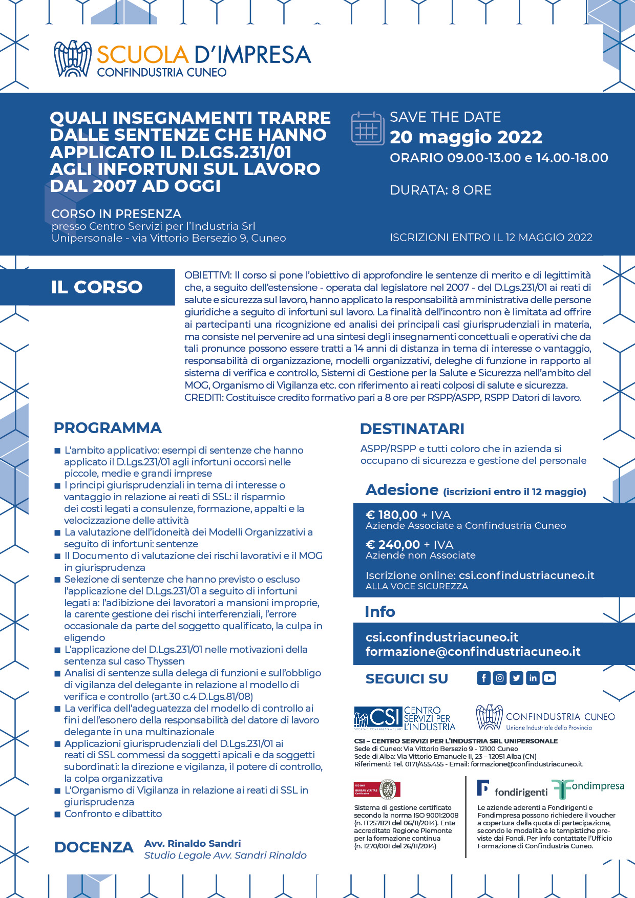 180,00 € + IVA per le aziende associate a Confindustria Cuneo